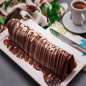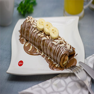 كريب محشية بالبراوني و الموز و كريم باتيسيار مغطسة مع الشوكولا البلجيكية المميزة