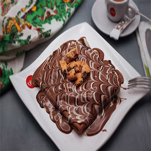 كريب محشية بقطع الكوكيز و مغطسة بالشوكولا البلجيكية