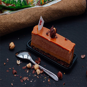 طبقات من البان كيك والبراوني محشية بكريم باتيسيار و مغطسة بثلاث انواع من الشوكوال البلجيكية