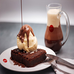 براوني على طريقتنا الخاصة مقدمة مع الأيس كريم و كوب من الشوكولا