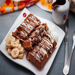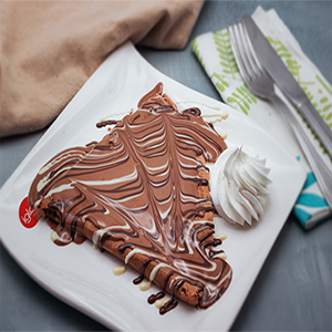 كريب محشية بالبراوني و الموز و كريم باتيسيار مغطسة مع الشوكولا البلجيكية المميزة
